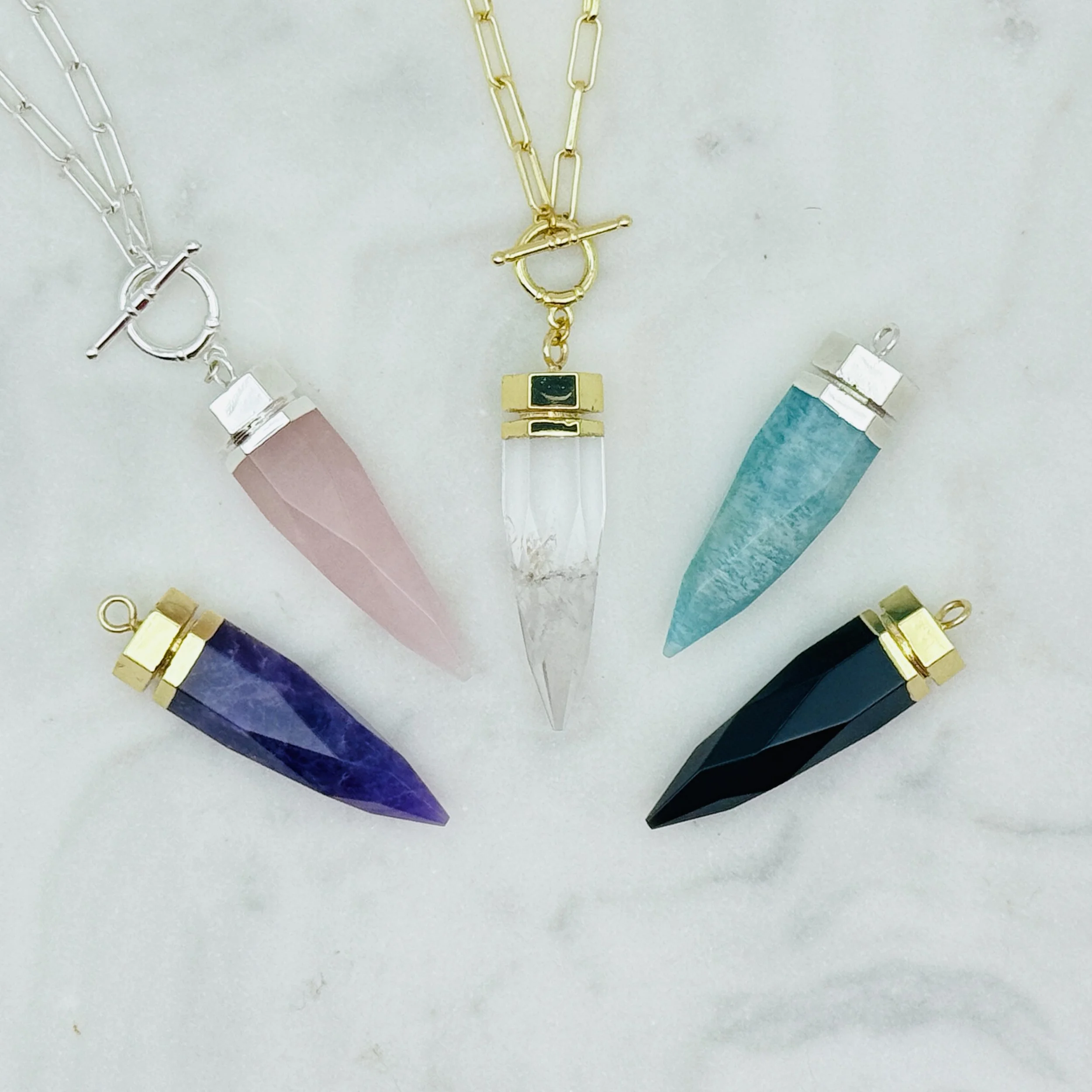 At Cat Witch Ladies, we create unique, handcrafted treasures to bring a touch of enchantment into your daily life. From Moon Water Decanters to smudging sprays and stickers, we offer magical goodies for every witch. But our absolute favorite thing? Pendulum necklaces! These beautiful pieces are not only stunning jewelry but also powerful divination tools that you can carry with you wherever you go. Whether you’re new to divination or an experienced witch, our pendulum necklaces make it easy to have a tool at your fingertips while looking fabulous. We’re here to celebrate the magic in everyday moments and the special bond between witches and their feline familiars. 🐾✨